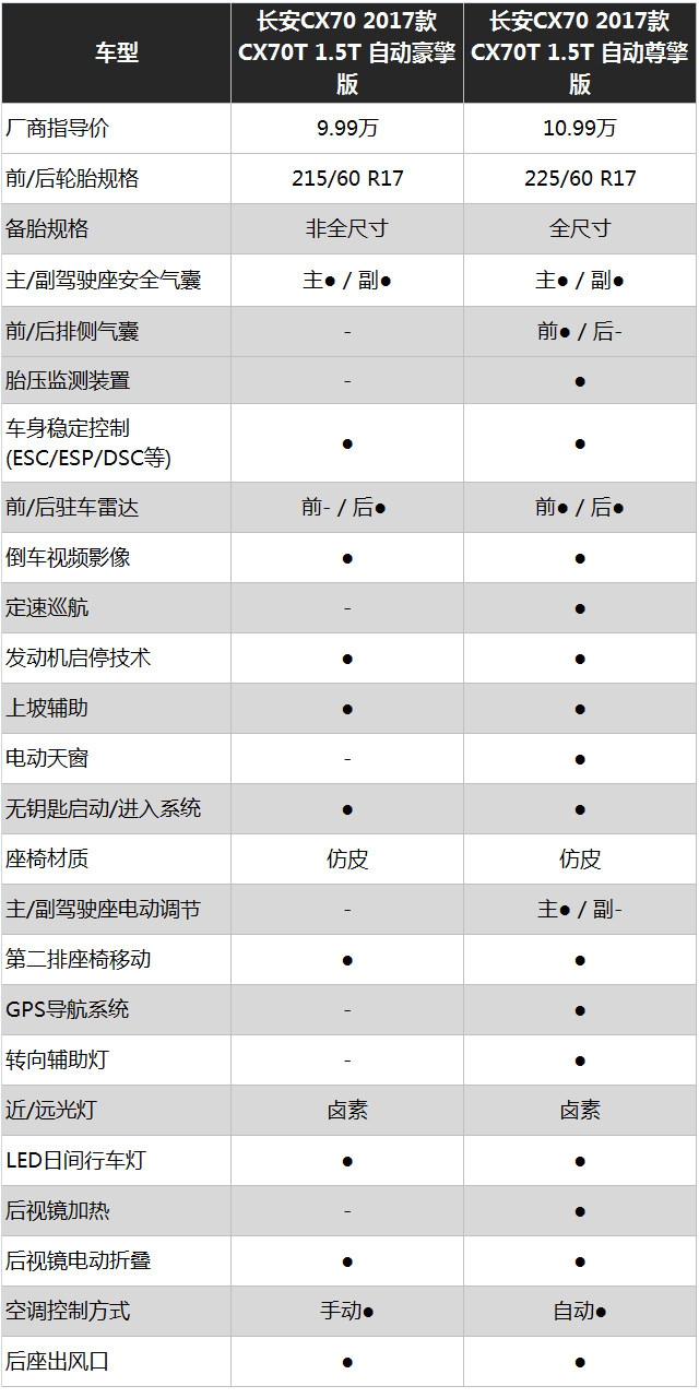 内饰的中控台采用了时下流行的T字型分布,银色装饰以及烤漆面板看上去档次感还是有的,当然这都不是重点,下面我们来看看长安CX70T的配置是否够厚道。