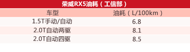 荣威RX5的工信部油耗数据也是很可观的,而这车上市有一段时间了,从车主口碑中得知,1.5T大概是8-9个油,基本上是一款紧凑型SUV的标准数据。