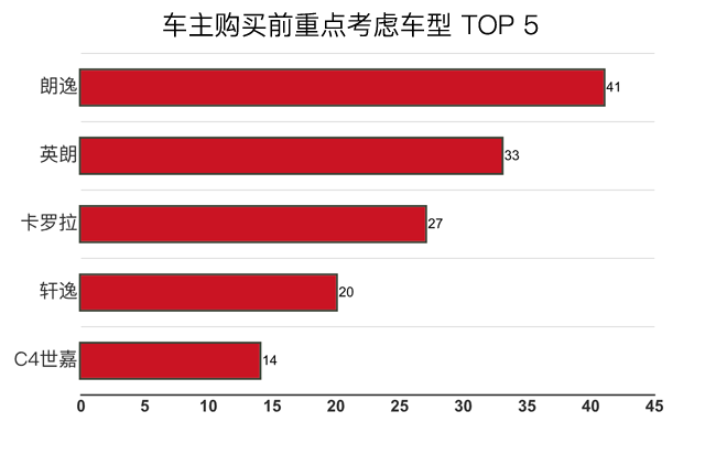 毫无疑问,在买宝来之前大多人考虑的都是朗逸!至于最后为何没买,大多是他们觉得宝来更好看...排名第二的是英朗,与宝来之间德美两个派别向来不缺话题;而对世界级神车卡罗拉的考虑也不少,只可惜吧,日系车对部分人来说始终是道槛。