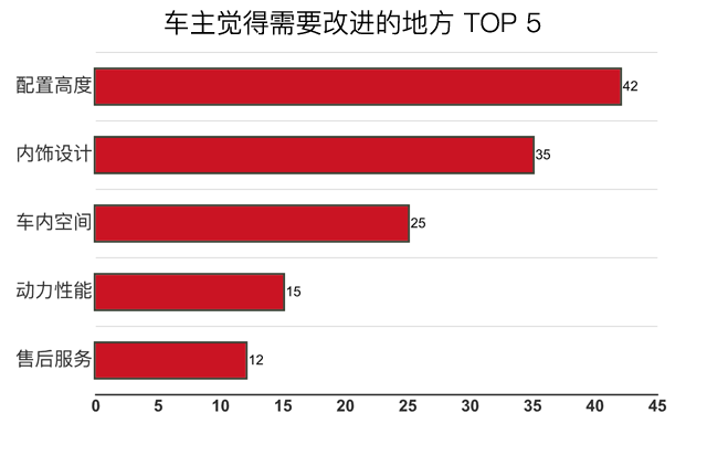 成也配置败也配置,车主觉得最应该改进的是配置级别,他们觉得目前宝来各方面的配置只能以实用来形容但却毫无看头。毕竟同级别对手中已经有不少装备电动调节座椅、LED大灯、电动驻车等功能,看着更显档次。