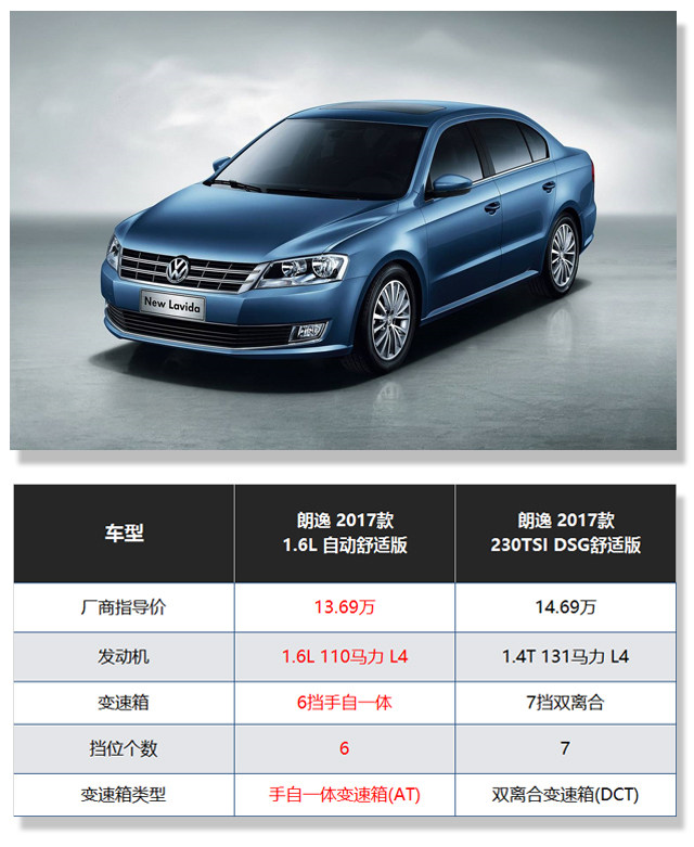 而在紧凑级车销量的常胜将军朗逸身上,有1.6L和1.4T两种动力总成。1.6L搭载了来自爱信的6AT变速箱,而1.4T则是大众自家的DSG双离合变速箱。上述的选择题同样出现在了朗逸的身上,那么作为一款家用为主的买菜车省心耐用始终是消费者的第一诉求,而出过召回污点的DGS,哪怕质保变回3年十万公里也不足矣打消我对它的顾虑。