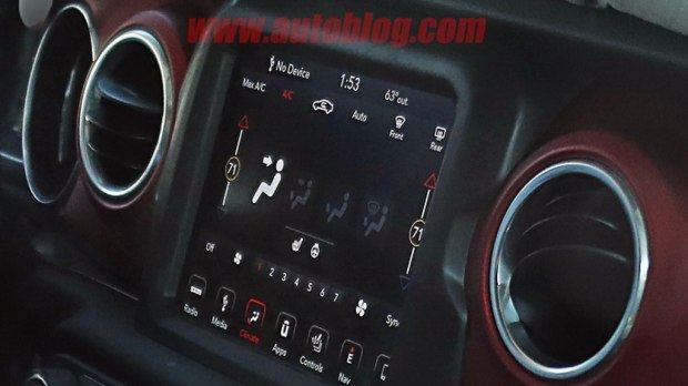 从内饰谍照来看,新一代牧马人的中控台进行了重新布局,空调出风口上移,全新的仪表盘设计,按键布局也有所调整。车内还配有一个大尺寸的液晶显示屏,黑红双色搭配,让硬汉牧马人也展现出调皮的一面。