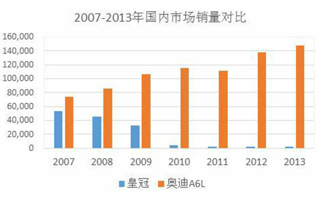 不能及时的推陈出新,自然要在销量上吃亏。这也就不难解释为何奥迪A6的销量在2012年稳步上升,而丰田皇冠则呈现断崖式下跌。