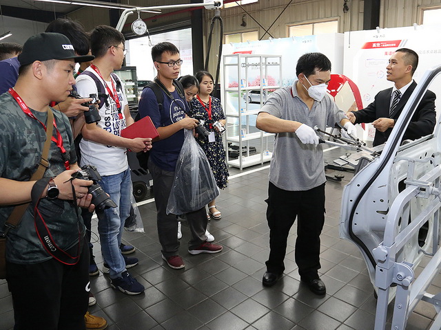 最后我们重新回到了展台区域,通过VR视频再次观看了奥迪的绿色钣喷工艺流程,加深了我们的印象,也开拓了不少知识面,也为奥迪严谨的服务态度鼓掌。