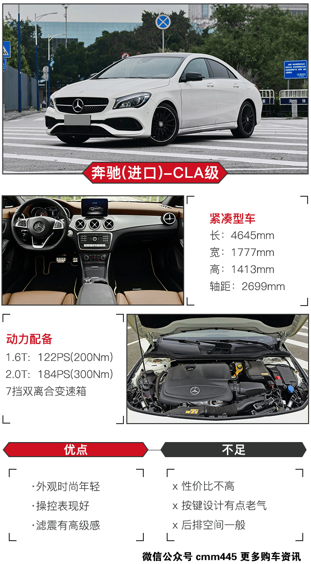 30万左右,能买到1.6T的高配CLA。开起来在初段动力上的输出表现很好,7挡双离合的换挡相当迅猛。平时温柔点开,CLA的顿挫不明显。想要爽一下时,一脚油门剁下去,变速箱也能随时奉陪。