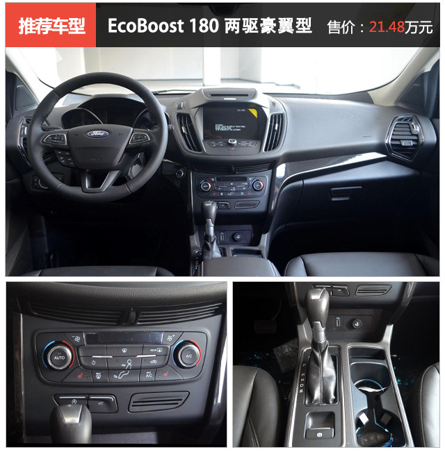 推荐购买的配置是2017款 EcoBoost 180 两驱豪翼型,是整个车系中的两驱顶配,拥有很多实用的配置,胎压监测、倒车影像、定速巡航、全景天窗、电动后备厢、后排出风口、无钥匙进入/启动、自动大灯、感应雨刷、自动空调,算上平均优惠差不多两万元,全款落地大概是22万元。