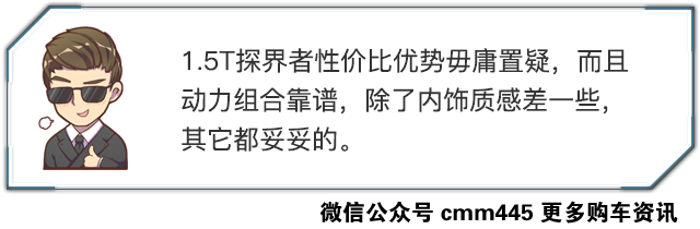 此外,早期通用车型上的6AT饱受吐槽,平顺性匹配比较一般。不过现在探界者的6AT在平顺性上基本没啥问题,称得上好开的车了。当然,如果你问我1.5T探界者跟2.0T版本之间该怎么选,我只能告诉你,前者尽管入门但开着不会憋屈,后者则明显要更强,甚至快得有点粗暴。
