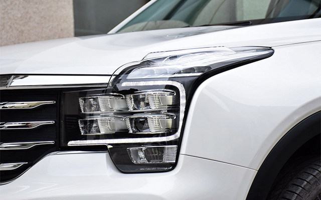 看完前脸我们再来看看它们的“眼睛”,同样都采用了LED前大灯,大通D90的大灯造型比较中规中矩,并没有特别出色的地方,而传祺GS8最点睛之笔在于这个四颗矩阵式大灯,霸气十足,所以在眼睛这个地方传祺GS8完胜。