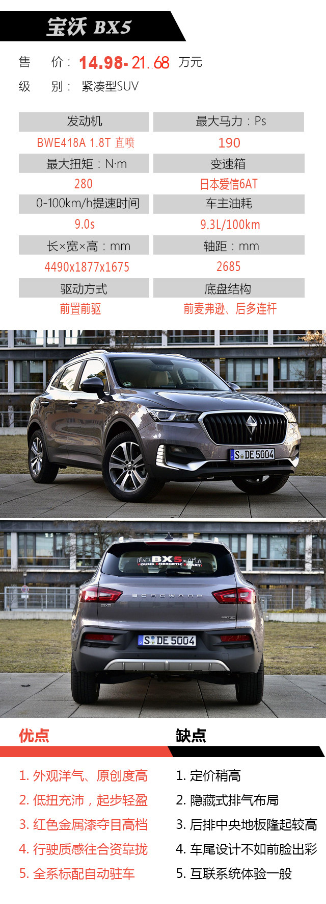 点评:宝沃BX5或许是同价位车型中,整车品质最接近主流合资车的自主SUV。偏向德系的行驶质感扎实、厚重,内饰简洁大气,丝毫没矫揉做作之嫌,辅以一般自主品牌无法企及的品牌溢价能力,卖得好不无道理。在不打价格战的情况下盘活宝沃,教授对福田表示服气。