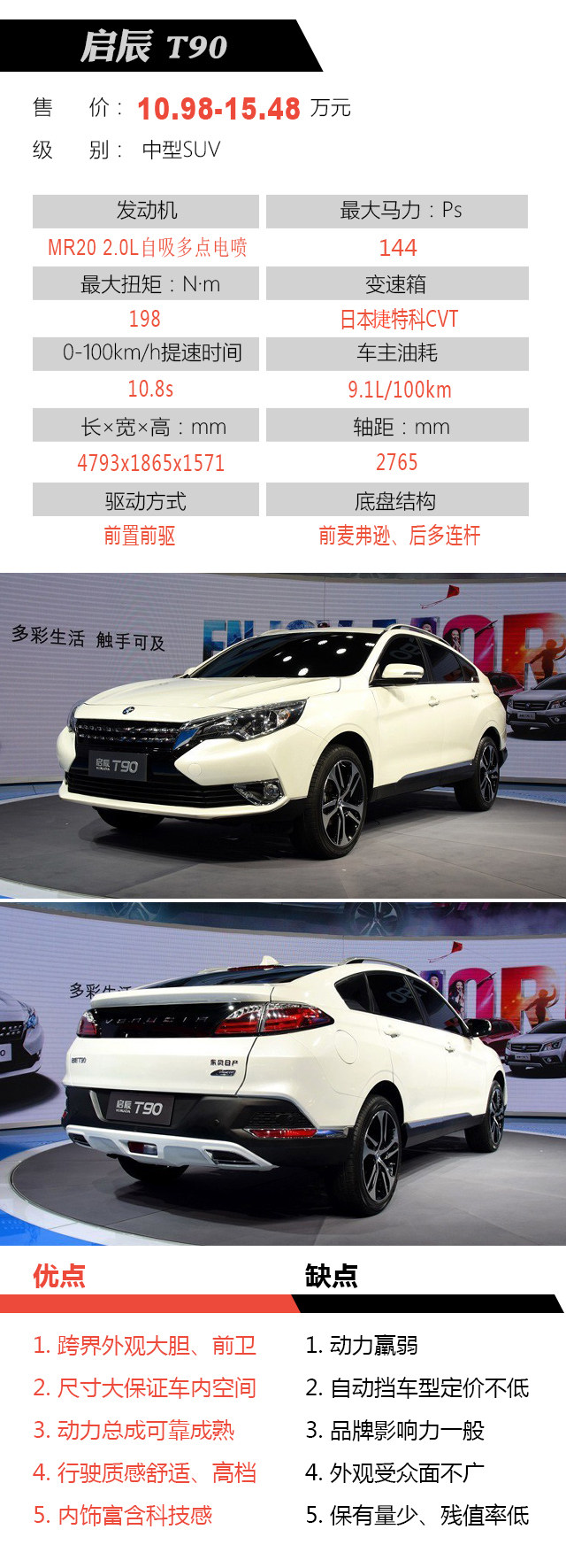 点评:如果说观致3 GT外观足够洋气,那么启辰T90的洋气则体现在动态表现。外观设计稍显用力过猛的T90,内里却有着成熟沉稳的“内核”,在日产技术扶持、机械层面援助的得天独厚优势下,启辰有着一般自主车企所羡慕的可靠动力总成,而T90便是最好佐证。