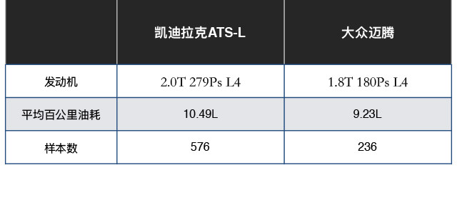 根据小熊油耗的数据,2.0T+8AT的ATS-L百公里油耗为10.49L,而1.8T+7挡双离合的迈腾百公里油耗则为9.23L,在油耗方面迈腾还是占有一定优势的。