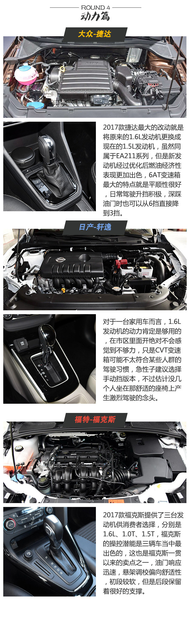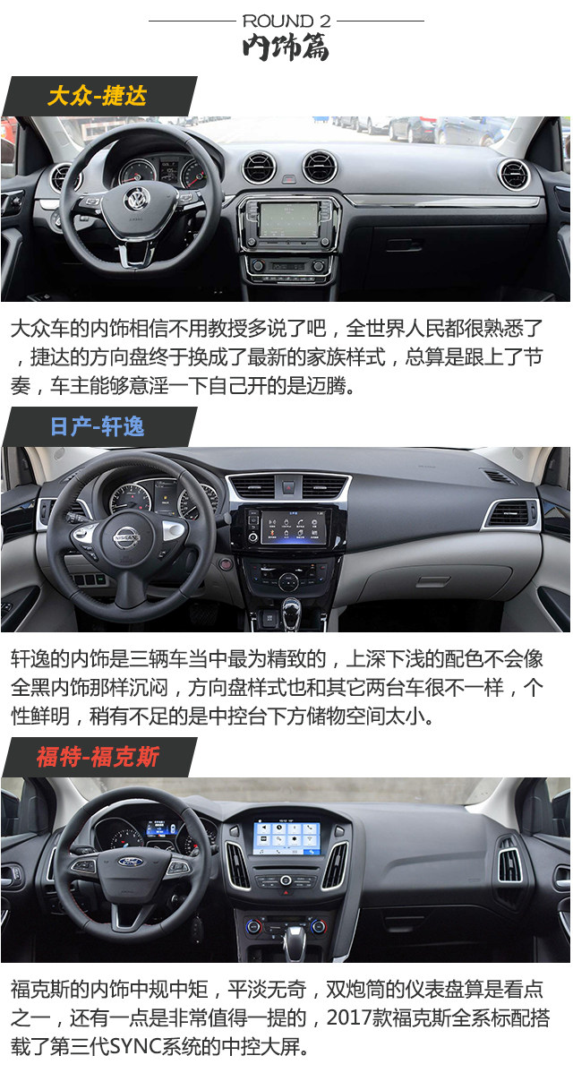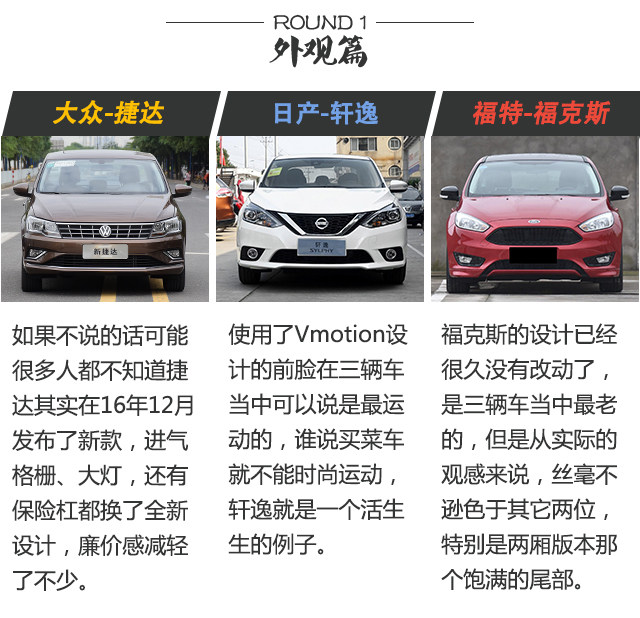 其实三辆车并没有本质上的谁输谁赢,反而是各有各的特色,买捷达的人注重的是大众的品牌力,买轩逸的人注重的是一家人的乘坐舒适性,买福克斯的人注重的是怎么改装才能发挥它的潜能,每个人的想法都没有问题。