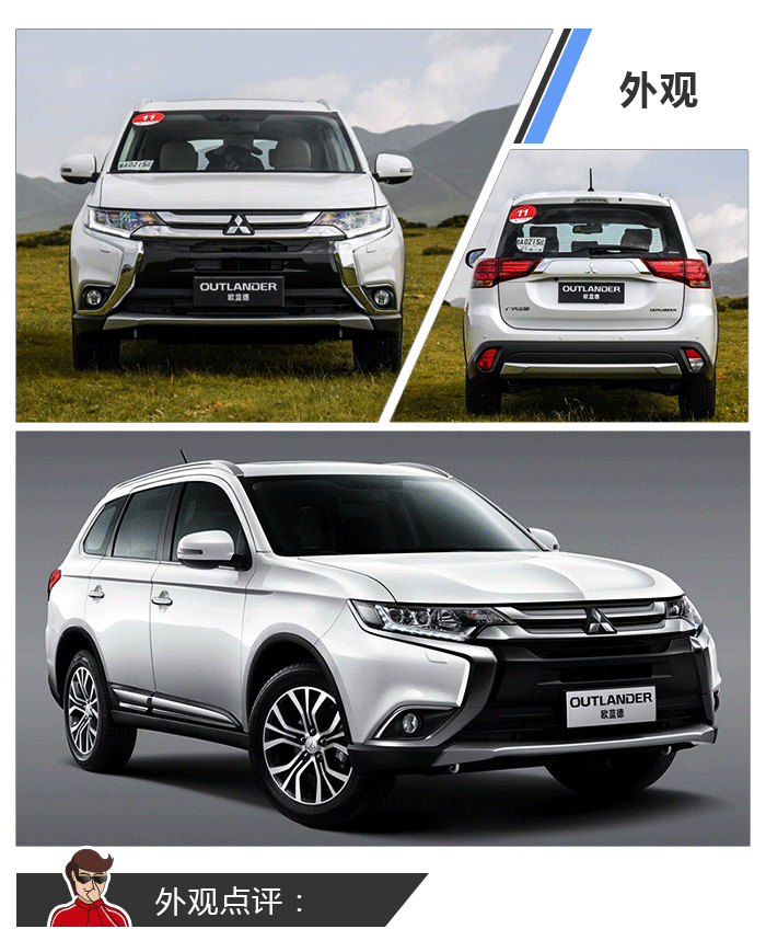 三菱已经息微了,但国产之后的欧蓝德似乎重新焕发了新生。外观与进口版本变化不大,多了些国人喜欢的镀铬装饰。整体设计中规中矩,一切以实用为主。4.7米左右的车身设计得非常协调,前后银色的护板则让其具备一定的野性。