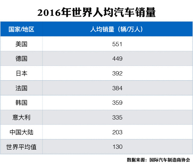 在这几个国家里,美国每1万个人中,就有551个人拥有车辆,而且德国,日本的人均汽车销量都基本上是中国的两倍,十分尴尬,只能说美国平均1个家庭2台车,而中国是1台车照顾2个家庭,在一线城市,可能是一辆别克GL8,但是在三四线城市,可能就是一辆五菱宏光。