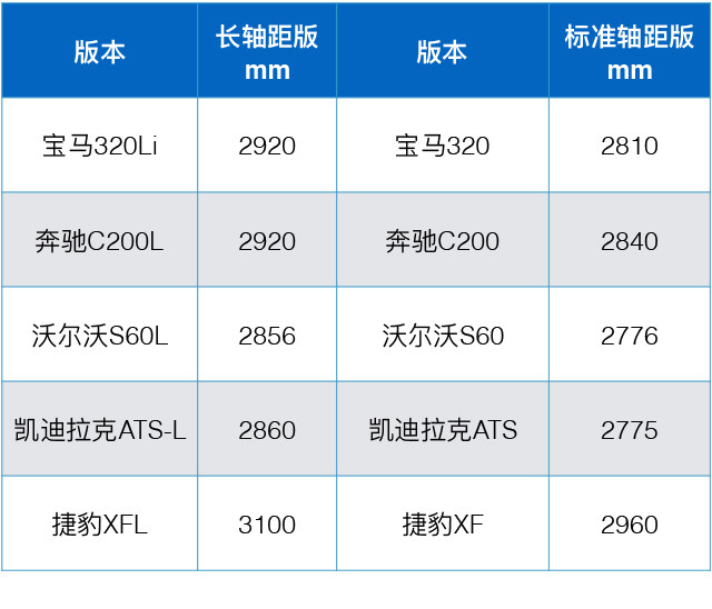 其中除了奔驰和宝马在中国有标轴版的国产版本之外,其他品牌的标轴都只能以进口的形式进入中国,而中国版的它们,都通通采用长轴距版本,空间更大,更符合中国人用车需求。