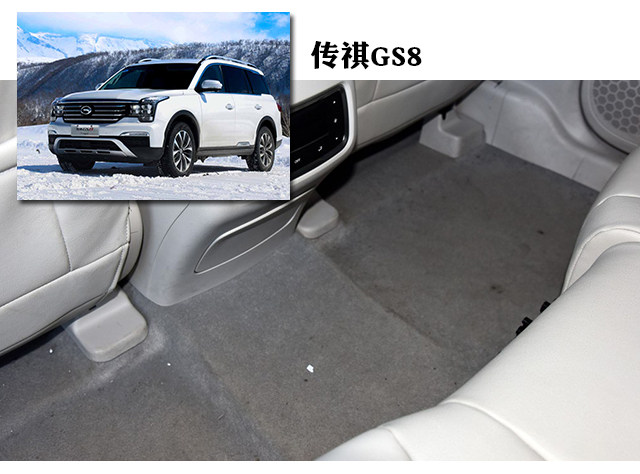 以传祺GS8为例子,从车身结构上看,传祺GS8在底盘方面为其四驱系统的中央传动轴预留了镂空的设计,但由于SUV底盘高,所以基本都不会侵占到后排地台的空间。