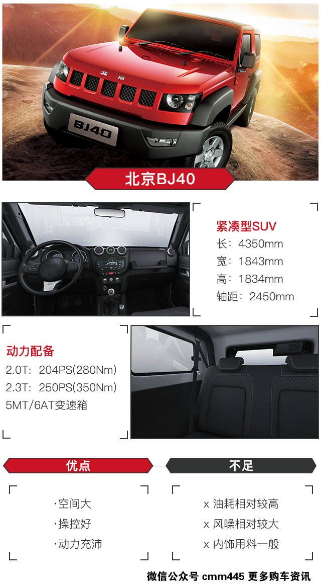 以上三款都是采用非承载式车身、分时四驱的SUV车型,而这两点在以往也被认作是一款“硬派越野车”必备的条件,所以如果有越野兴趣的人,就稍微舍弃一下内饰的精致与豪华,把这三款车开回家吧~