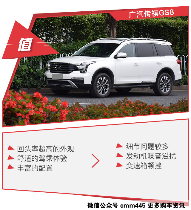 传祺GS8有着非常高的性价比,足够帅气的外观、够大的尺寸以及超高的性价比都是它的优势所在,驾驶感受也非常不错。因此传祺GS8能够卖的那么好也就不难理解了,但是作为一台自主的中型SUV来说他还是有许多不完善的地方,比如说音响,不能遥控关闭的天窗,以及它的发动机的噪音以及顿挫,这些方面都是不如汉兰达的地方。也是这些方面会让你感受到自主车和合资车还是存在着一些差距,那么总结一下谁比较适合这台车谁又不适合这台车呢。