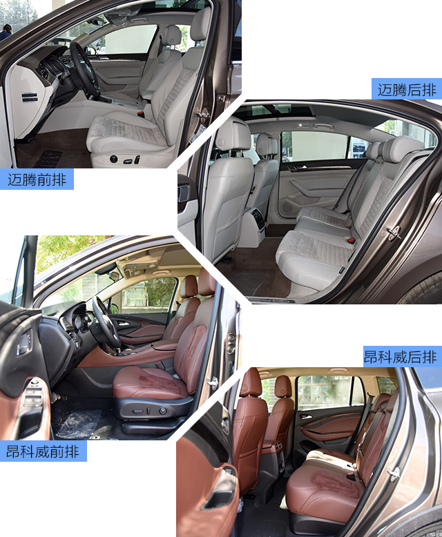 内饰方面,两者都没有太多挑剔的地方。迈腾有着强烈的熟悉感;进入车内一股德系车固有的特色迎面而来;做工非常出色。而昂科威则用出色的用料与环绕式的中控造型呈现出豪华感。就做工两者各有千秋,但豪华感则昂科威略胜一筹。