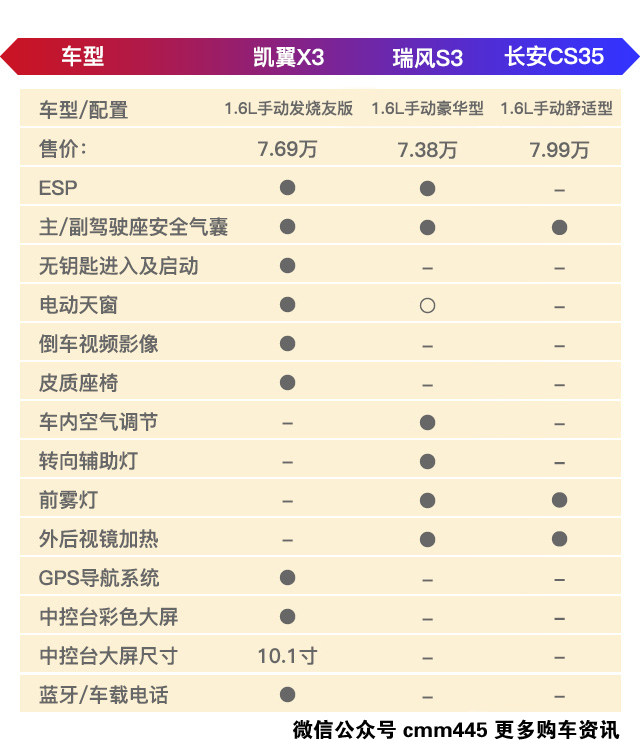 这个老铁因为是要买人生的第一辆车,所以对这些车型都有很多疑问,既然如此咱们今天就来看看长安CS35、凯翼X3、瑞风S3这几款“3系”的产品特点。也由于首次购车的朋友对于汽车的保修政策存有疑问,下面也会简单罗列一下。