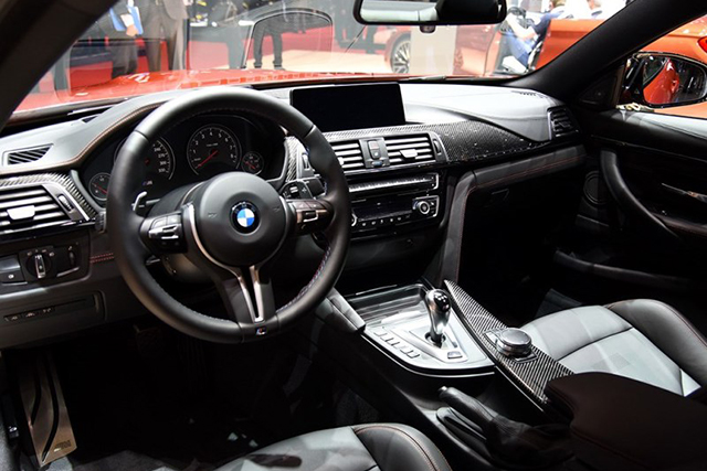 新款M4在中控台细节处增加了镀铬装饰以提升质感。与此同时,新车内部的M标志还融入了光源,此外,该车还配备了最新的iDrive人机交互系统。