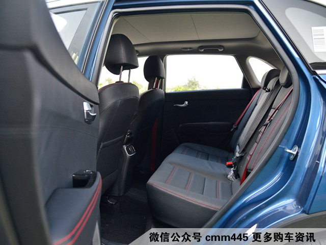 KX3的前排头部空间充裕,但二排就有点不足。二排腿部空间也是一般而已,且中央没有头枕,好在地板的凸起不高,影响不大。不过,红色的安全带倒是非常有特色,看起来很骚气。