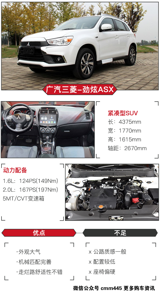 听完我的介绍,小航毫不犹豫地选择了劲炫ASX。因为它的底盘在农村烂路面前,确实显得格外游刃有余。KX3的外形夸张,并不是很多人能接受。ix25倒是不错,只是发动机噪音有点大,对舒适性影响明显。