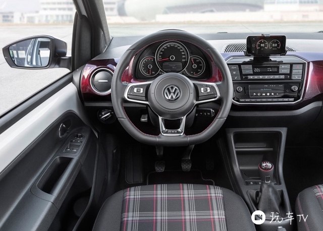 而车内则是GTI车型特殊的格子花纹内饰,连挡把上的字都是红色。