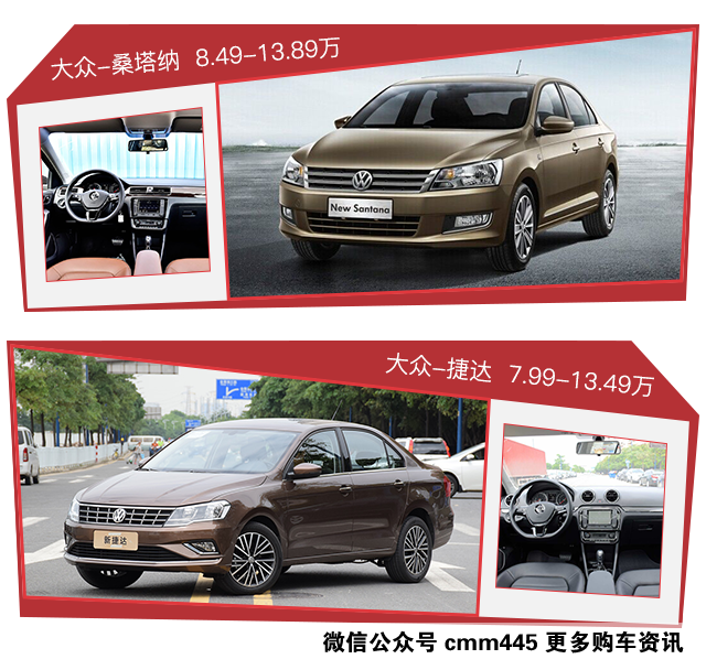 而捷达/桑塔纳行驶品质更好些,但动力表现一般般,油耗也中规中矩,不过保养便宜,配置比较完善。桑塔纳每个配置都比捷达略丰富,但价格也略贵。值得一提,这两款车在终端都有很大的优惠幅度,所以即便是定价较高也能买。