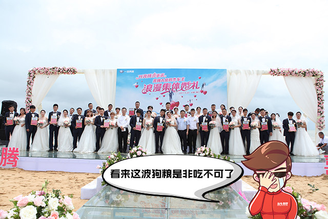 5月20日当天,一汽奔腾在海口举办了一场声势浩大的集体婚礼,22对新人在海滩许下了永结同心的承诺。