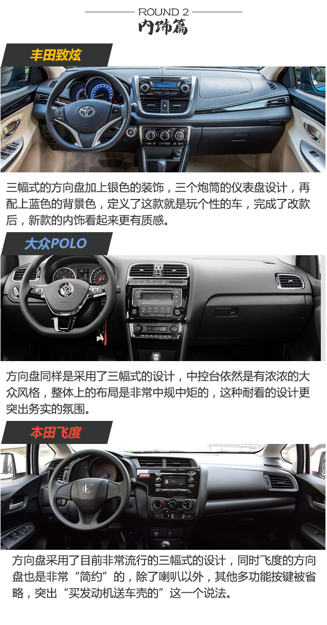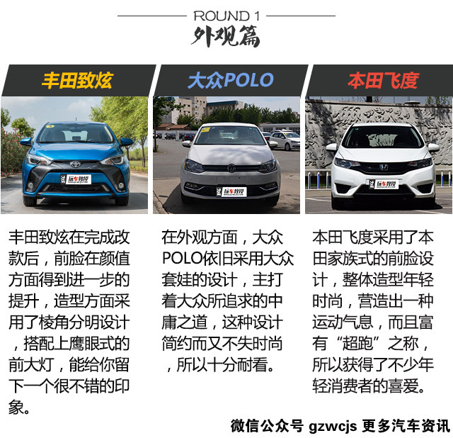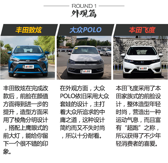 2、那一款才更能突出自己的性格?以前老一辈的人经常会嘱咐小孩子这四个字“字似人样”,意思就是“你写出来的字,代表你是一个什么的人”。那么选择自己的车也是同样的道理,丰田致炫和本田飞度,从外到内都突出一种年轻的气息,所以它们更符合年轻人喜欢追求张扬的性格;但大众POLO所突出的就是德系的扎实稳重的感觉,比较适合一些务实的年轻人,这样更可以突出人的成熟、稳重。