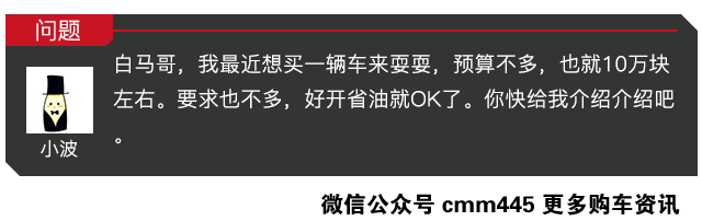 10万预算可选的还真不少,但要加上好开省油这个条件就可以排除掉一大堆,不过这难不倒我,白马哥心中已经有了选择!