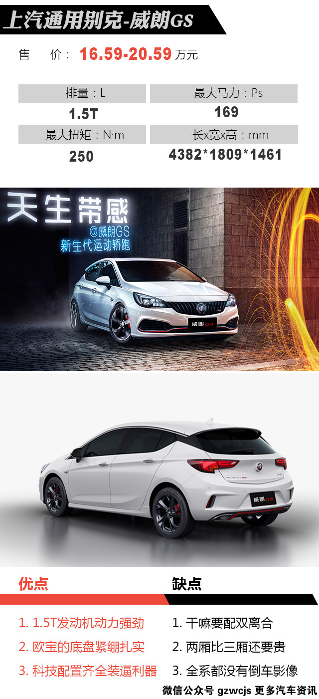 推荐理由:利用名字来包装产品其实并没有什么毛病,再说了威朗GS的原型车可是欧洲赫赫有名的欧宝Astra,这就让它有着最为纯正的血统。虽说动力无法与GTI媲美,但它的操控性可绝对对得起GS这个名称,悬挂动作快并且扎实,支撑力十足车身毫无松散的感觉。