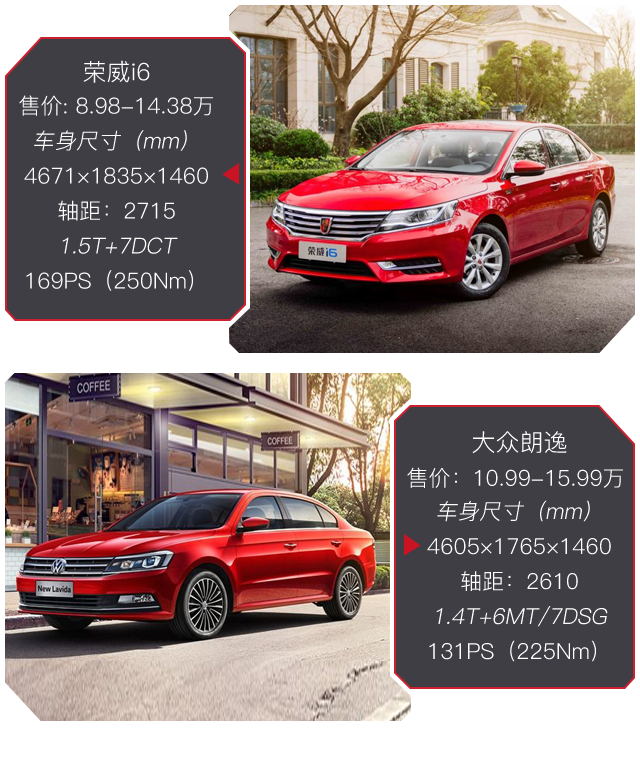 而到了竞争最为激烈的紧凑型市场,轿车方面最具代表性的当属德原朗-朗逸,作为一款中国特供车型,其实它的德味并不那么重,但不能否认它的各方面设计都很符合中国市场。而它要面对的则是同样来自上汽的荣威i6,一款设计上更具时尚大气且德味更足的自主新家轿。