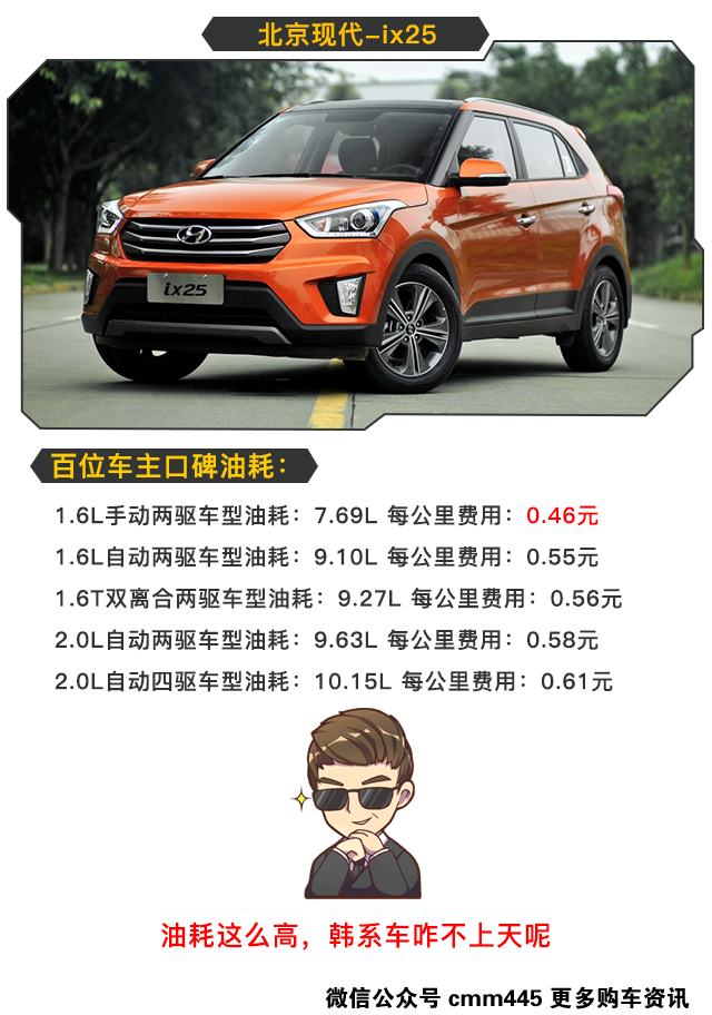 曾经许多人都认为买自主不如买韩系,现在随着自主车型的雄起,这句话要反过来念了。ix25的这份油耗成绩不仅在同级中不占优势,甚至与自主紧凑型SUV相比也落于下风。既然如此,何不买台空间又大、配置又丰富的自主紧凑型SUV呢。