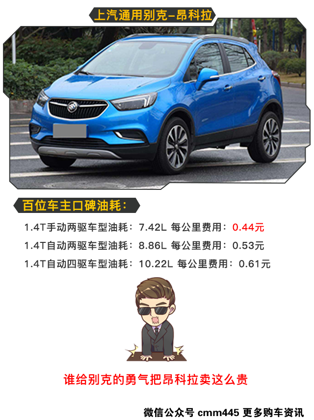 其实撇开1.4T自动四驱车型不看,昂科拉的油耗还算合理,只是售价真的是太高了。起售价就比创酷贵上4万元,而实际产品力来看,两者都十分相似。因此,不是对别克品牌特别有信仰的人买创酷会更为理性。