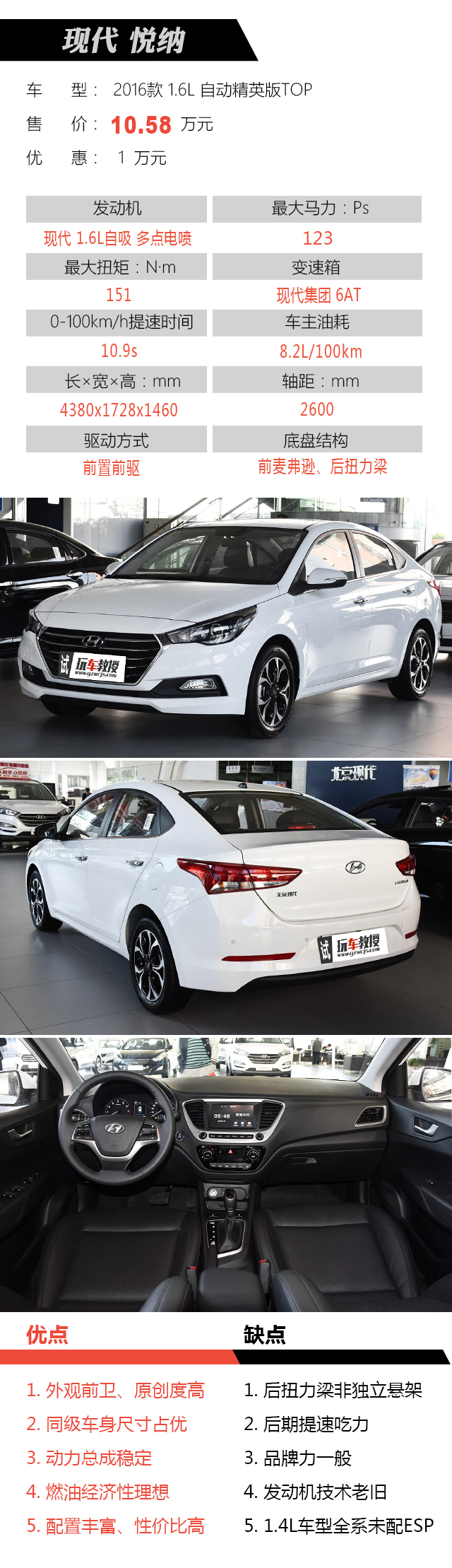 点评:悦纳依旧承袭韩系车高颜值、高性价比的作风,年轻动感的外观给人眼前一亮的感觉,辅以不高的售价确实能俘获大批持币待购的年轻消费群体。悦纳定位小型车,车身尺寸却向紧凑型车看齐,2600mm轴距长度便是最好佐证。低扭表现不俗,起步提速轻快,中后段提速乏力。