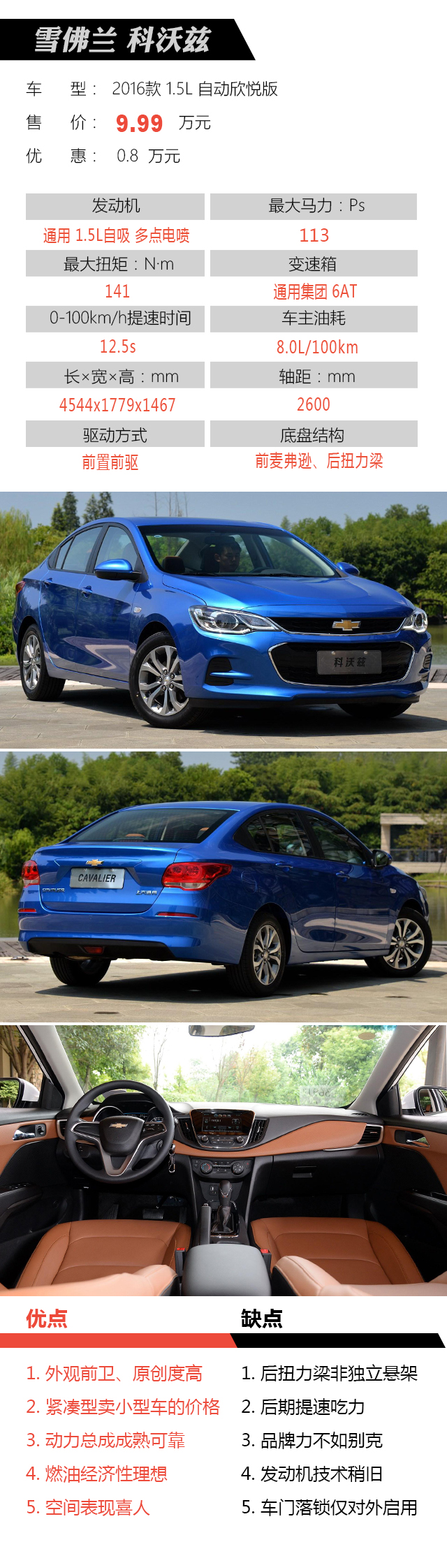 点评:拥有主流紧凑型车尺寸却卖着合资小型车的价格,这便是科沃兹的杀手锏。外观体面大气,内饰设计讨好年轻群体,性能表现满足家用车代步需求。在众多方面,科沃兹都表现出大厂的功底,但不高的定价决定了整车质感的上限,不能要求它面面俱到。