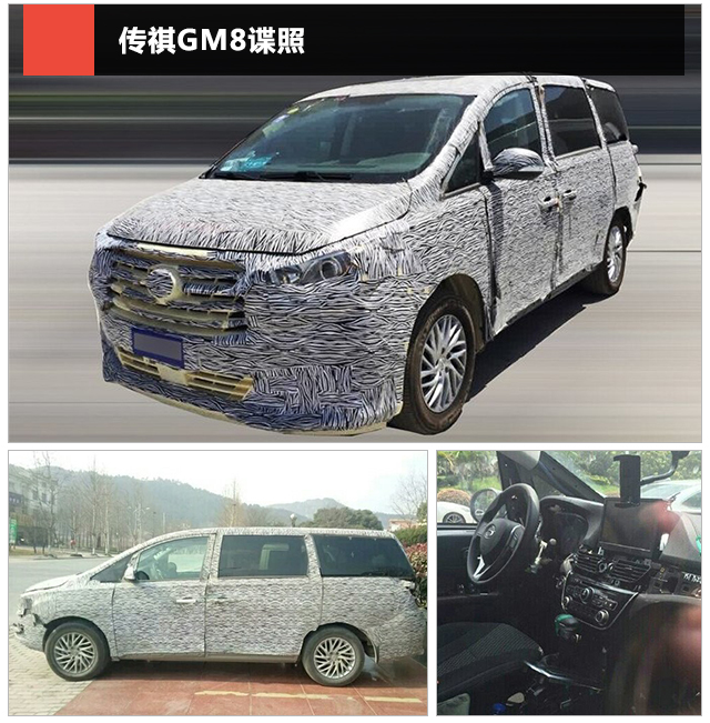 作为传祺品牌高端化的另一个车型,GM8与GA8、GS8同属一个阵型;其设计的原型车可以追溯到15年展出的i-lounge概念车的量产版本。预计标志性的“凌云瀑”仍然能在GM8上面展示。虽然如今仍然是谍照身份,但也能其中看出不少有用的信息。例如悬浮式中控大屏、电动侧滑门预计也能在GM8看到。
