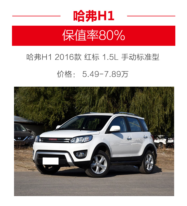 作为哈弗家族里的入门级车型,哈弗H1的起售价只有5.49万,也正因为卖得便宜,这车掉价的空间十分有限,所以保值率能够高达80%。从产品上来看,哈弗H1完全以代步需求为设计理念,空间紧凑、配置素寡,就连方向盘也是液压助力。除了便宜,哈弗H1似乎并没有啥竞争优势。相较之下,同样价位的宝骏510无论是动力,抑或是空间都要比哈弗H1更上乘,更重要的是电子助力的方向盘,预算有限的大伙可以自个掂量掂量。