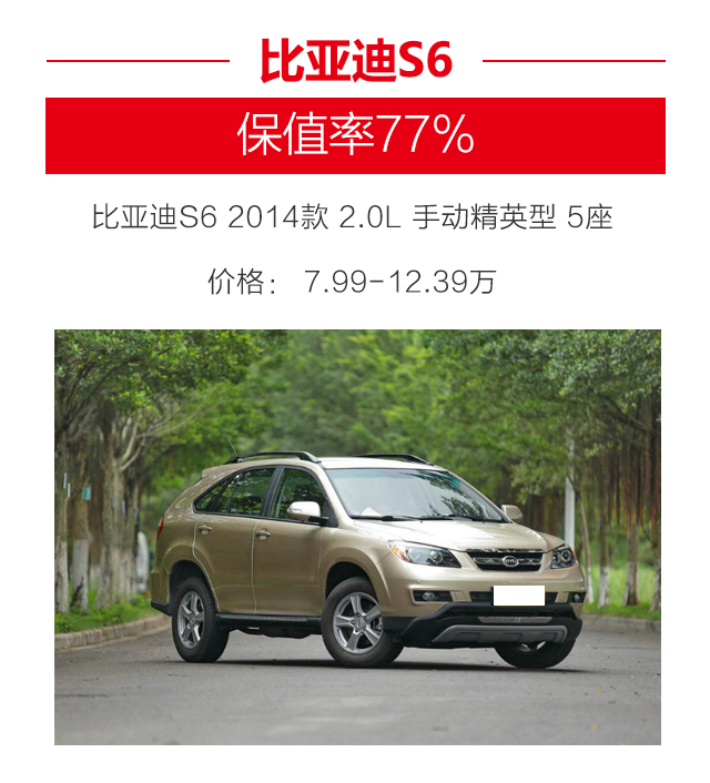 终于~等到了我的比亚迪。不!应该是大家的比亚迪。作为比亚迪在SUV界的开山之作,比亚迪S6的初代车型完美复刻某克某斯的某款车型,不过随着设计的进步,现在的比亚迪S6已经逐渐有了自己的设计语言。瞧瞧比亚迪S6的核心竞争力:不足9万,就能买到一辆拥有1.5T动力,轴距长2720mm的中型SUV;又或者不足9万,就能买到一辆7座中型SUV。无论是哪一种选择,放在这个价位都是超级划算的方案!更何况,自动空调、自动头灯、仿皮座椅、一键启动等配置也是全系标配,横着竖着都是大写的划算。回到保值率这个问题上,比亚迪这个品牌本来就代表了梦想,而梦想的价值是永恒的。