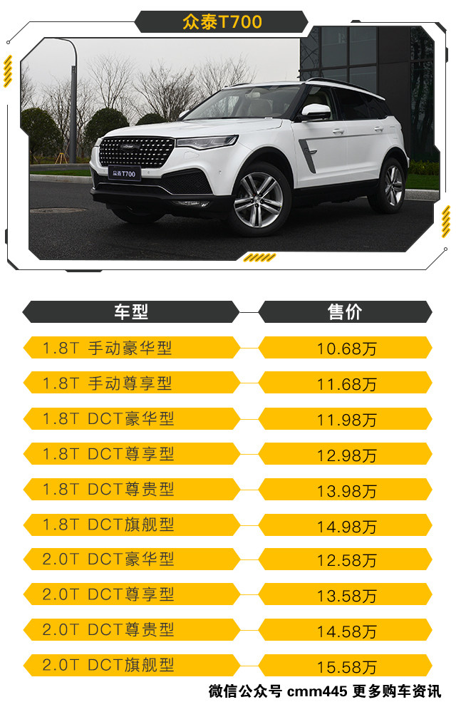 没有7座车型确实省去了不少的精力。但是对于不少家庭来说7座可以说是刚需,那么T700后期会不会推出七座版车型呢?答案是肯定的,虽然目前T700全系只有五座版可选,但是根据众泰的新车计划后期众泰会推出一款T700L,顾名思义也就是在T700的基础上进行加长,而这款T700L就是七座车型。
