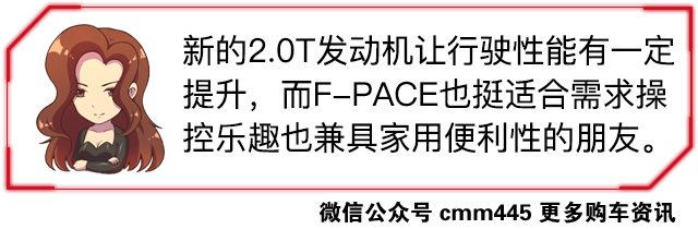 捷豹F-PACE即将推出改款车型,它的最大改动在于换装了捷豹路虎自行开发的Ingenium系列2.0T四缸汽油发动机,它带有顶置直喷、双VVT、滚子摇臂气门驱动、电控液压配气机构等技术。