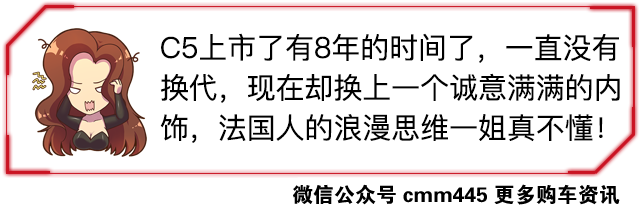它采用多了全新的家族式前脸设计,更圆润的前脸轮廓和大灯造型提升了整体时尚感。而尾灯造型也做出改动,灯组内部还采用“Quad-8”矩阵式LED光源设计。内饰的大幅度变化让一姐我目瞪口呆!这简直就是给C5直接装上了一个全新的内饰,不是吗?
