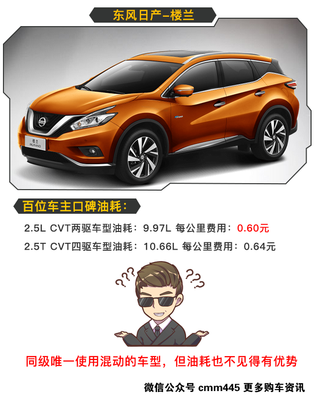 楼兰是同级中少有使用混动系统的SUV,但这套混动系统更多是加强驾驶体验而并非减低油耗。2.5T机械增压的混动系统在SUV中极其罕见,在低速时的响应确实不错。