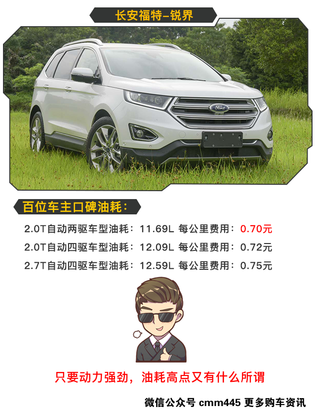 锐界的油耗相比汉兰达确实偏高了一点,但是它动力好啊。福特的车大部分都是如此,动力凌驾于油耗之上。此外在空间上,锐界也要逊色于汉兰达。不过在配置上,价位相同的车型,锐界要比汉兰达更为丰富。