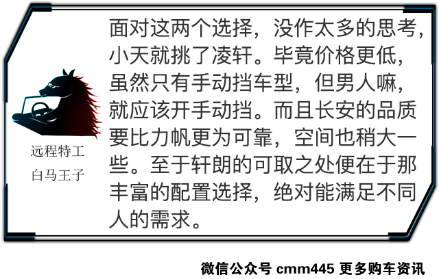凌轩在配置上的选择上就远不及轩朗丰富了,全系只有3款车型可选,且都是1.6L+5MT的动力组合。我会推荐买7.29万的中配车型,该有的配置都会有,例如ESP、后驻车雷达、倒车视频影像和中控大屏等。