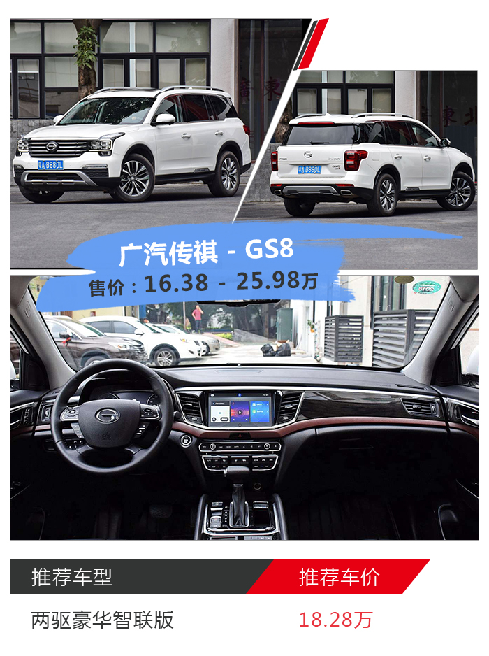 传祺GS8自亮相就受到了极高的关注,究其原因,GS8的造型符合绝大多数国人对这种大车的审美,当你走近看,不输百万豪华SUV的气场这一点就足够让你为之掏腰包。