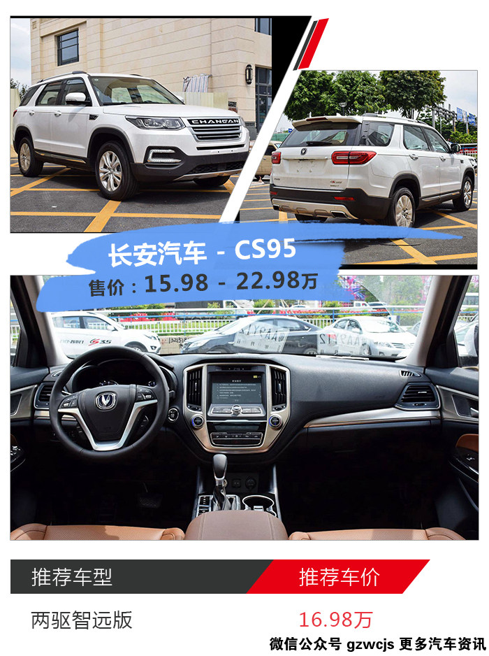 全系标配皮质座椅、LED大灯、后视镜电动加热/折叠等功能是CS95的优势所在。如果你对7座有需求,那么16.98万的两驱智远版足够满足你的配置需求.