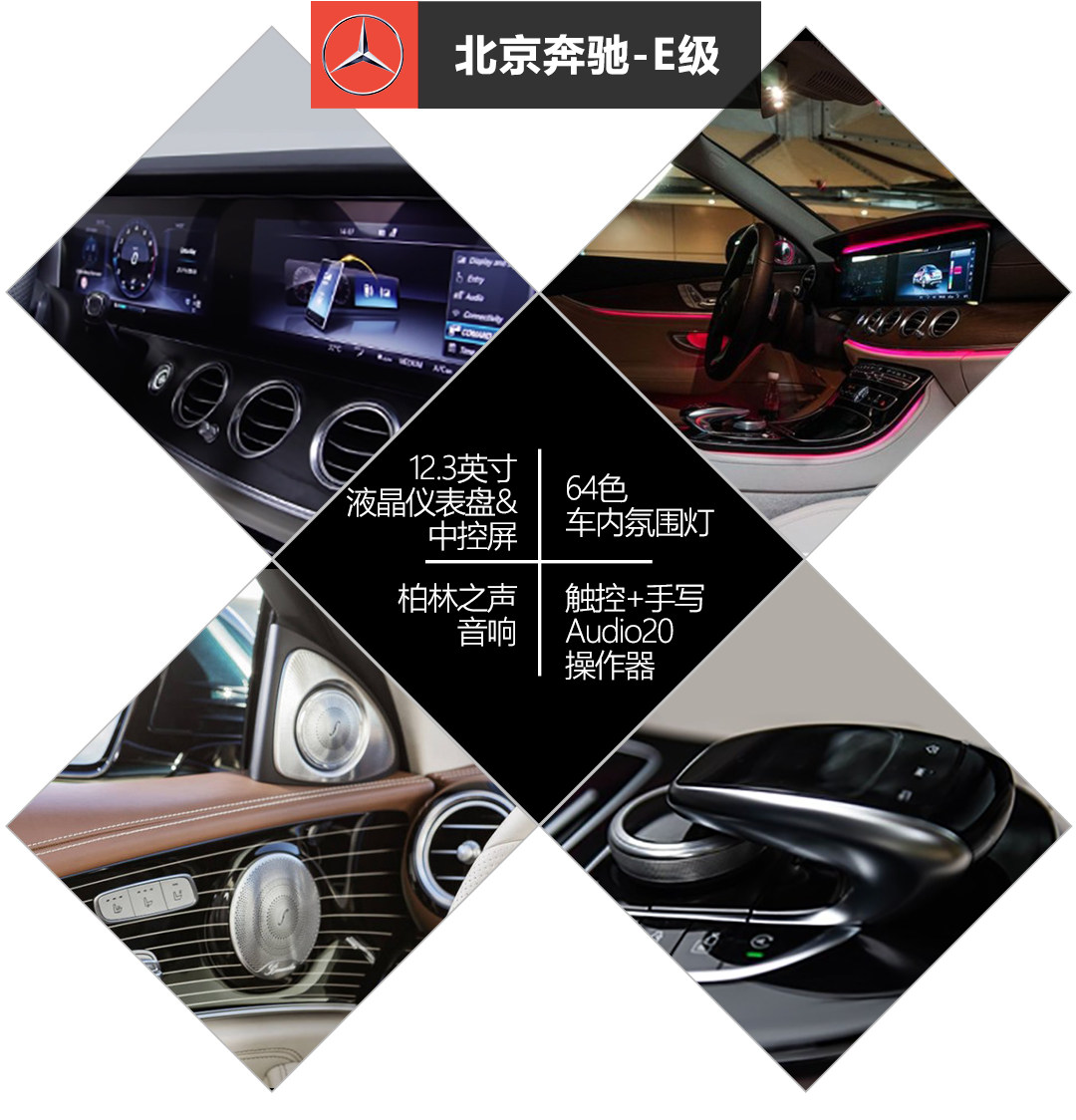 进入E级车厢,最抢眼的肯定是两块12.3英寸的大屏幕,64色的氛围灯比大哥S级还要多,柏林之声音响也是有的,不过要花7600元选装。E级的中控上半部分选自S级,下半部分选自C级,虽说在设计上有省事的嫌疑,但是这种组合却恰恰让教授觉得很顺眼。